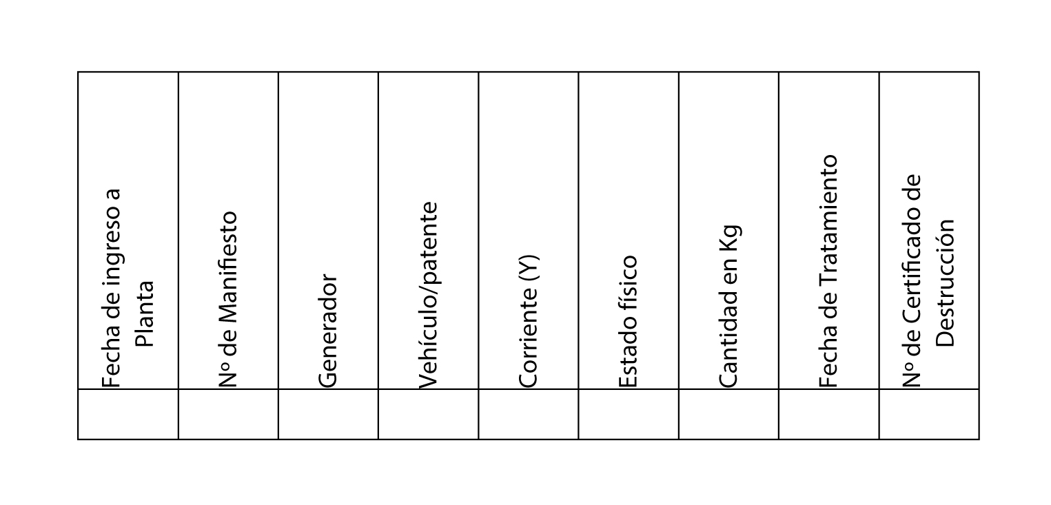h) Presentar de manera Cuatrimestral la Planilla de Operación de la totalidad de los residuos tratados, firmada por el representante técnico de la empresa.-
